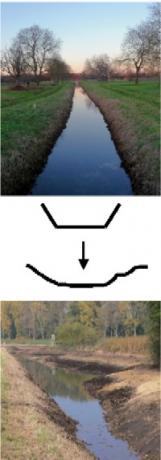 The widening and deepening in sections of these ditches can transform silted or monotonous ditches into diverse water courses. Additionally the dredging of deeper sinks which even don’t dry out in hot summers will provide habitats for water-bound species.